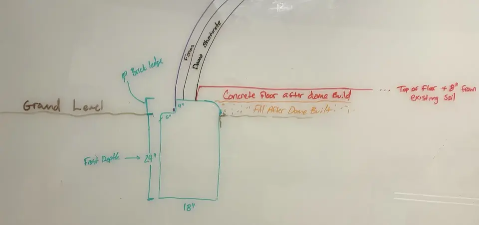 The rough sketch on the whiteboard for the ring beam footing and floor.