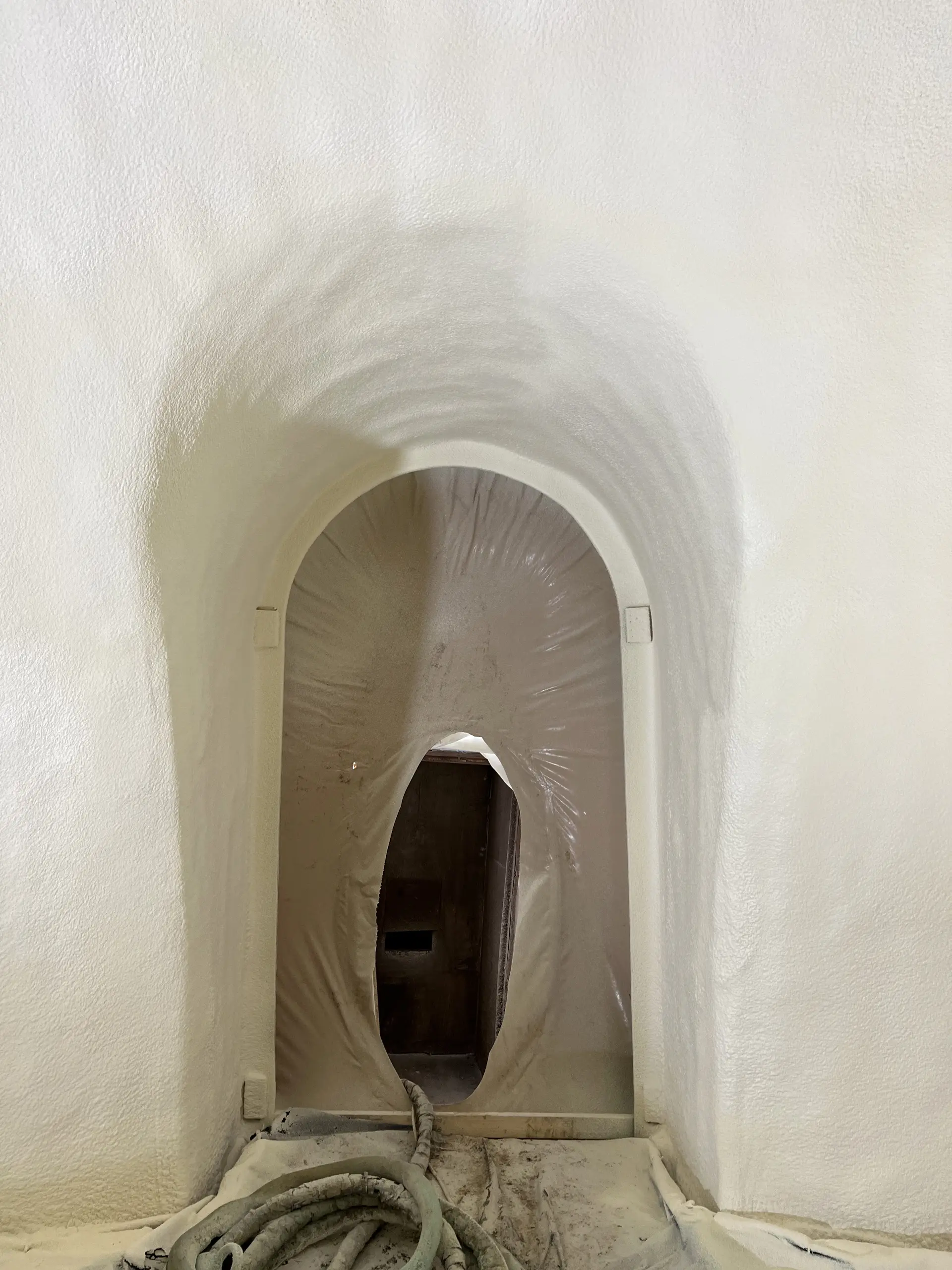 The sidewalls of these types of augments require a plywood form to restrain the shape. Nestor is demonstrating where the frames need to push the form inward.