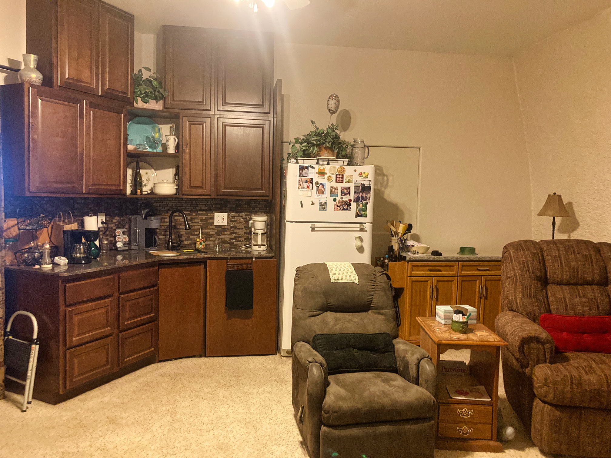 The occupants of this suite opted for a great room with a kitchenette and family room sharing the same space as a dining area (not shown).