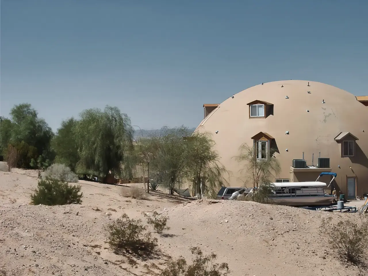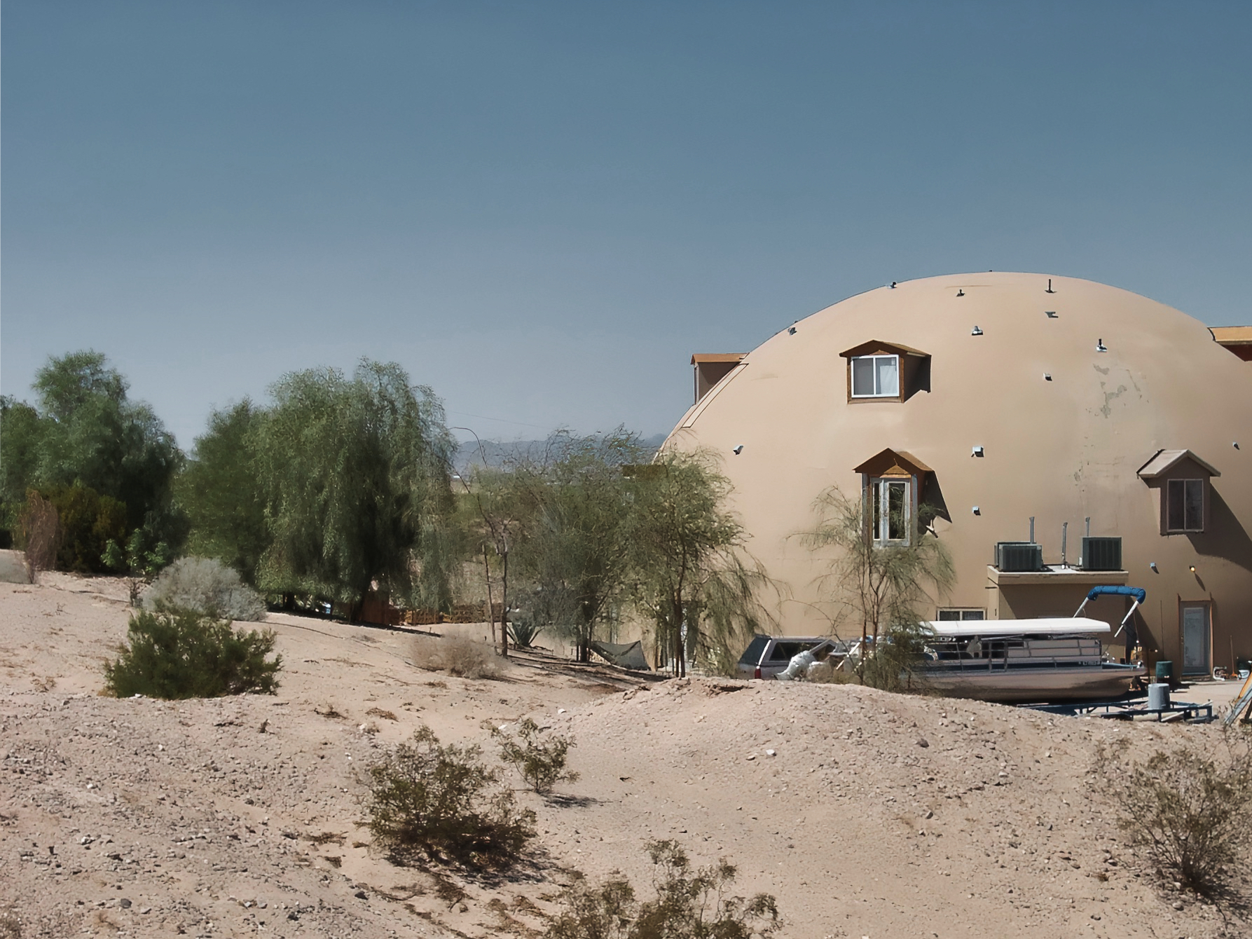 Yumadome blends nicely into the Arizona desert. This 11,500-square-foot home features eight private suites for multiple generations of the Henrikson family.