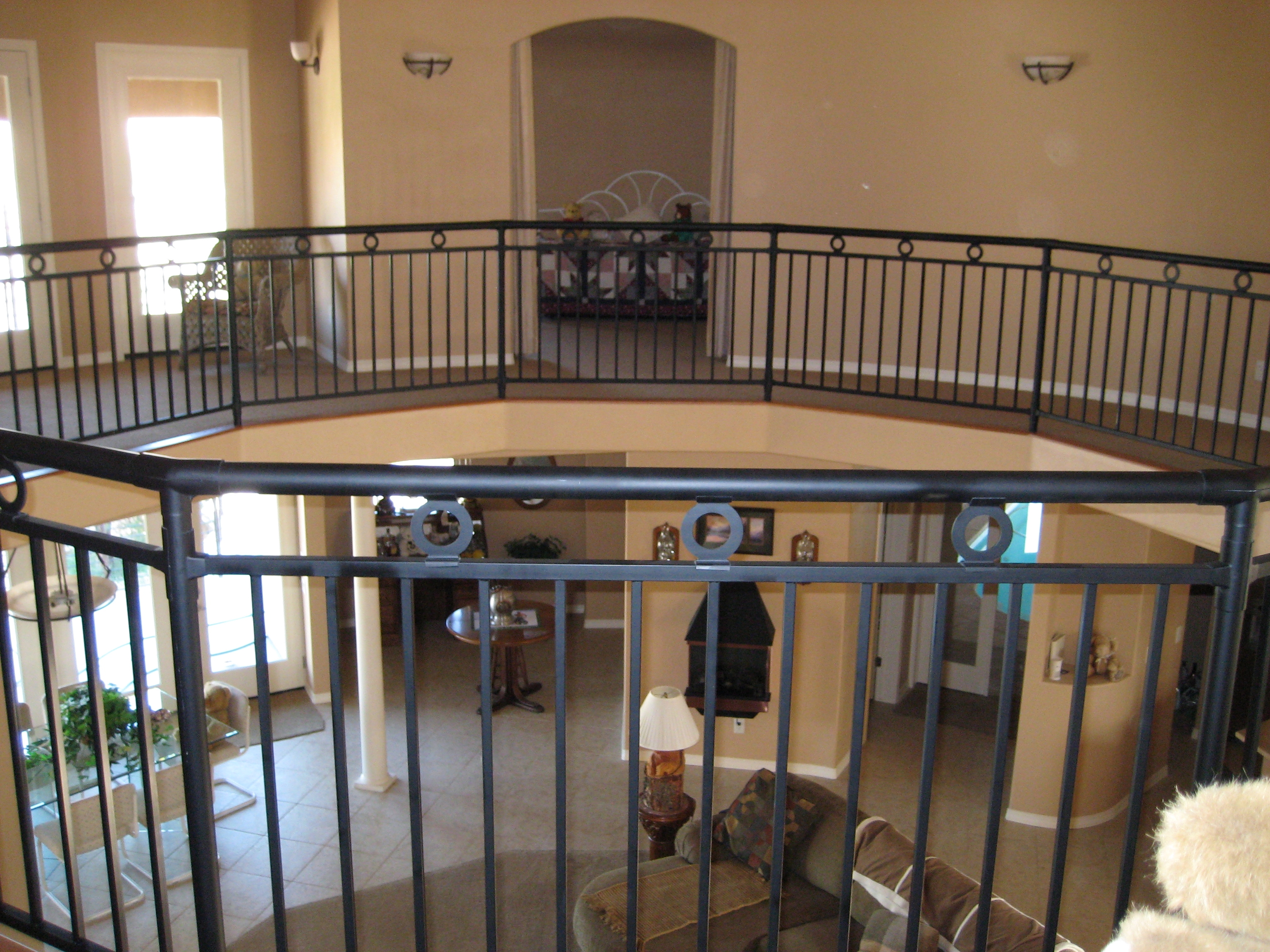 Second floor is open to the living room. Bedrooms ring the hallway.