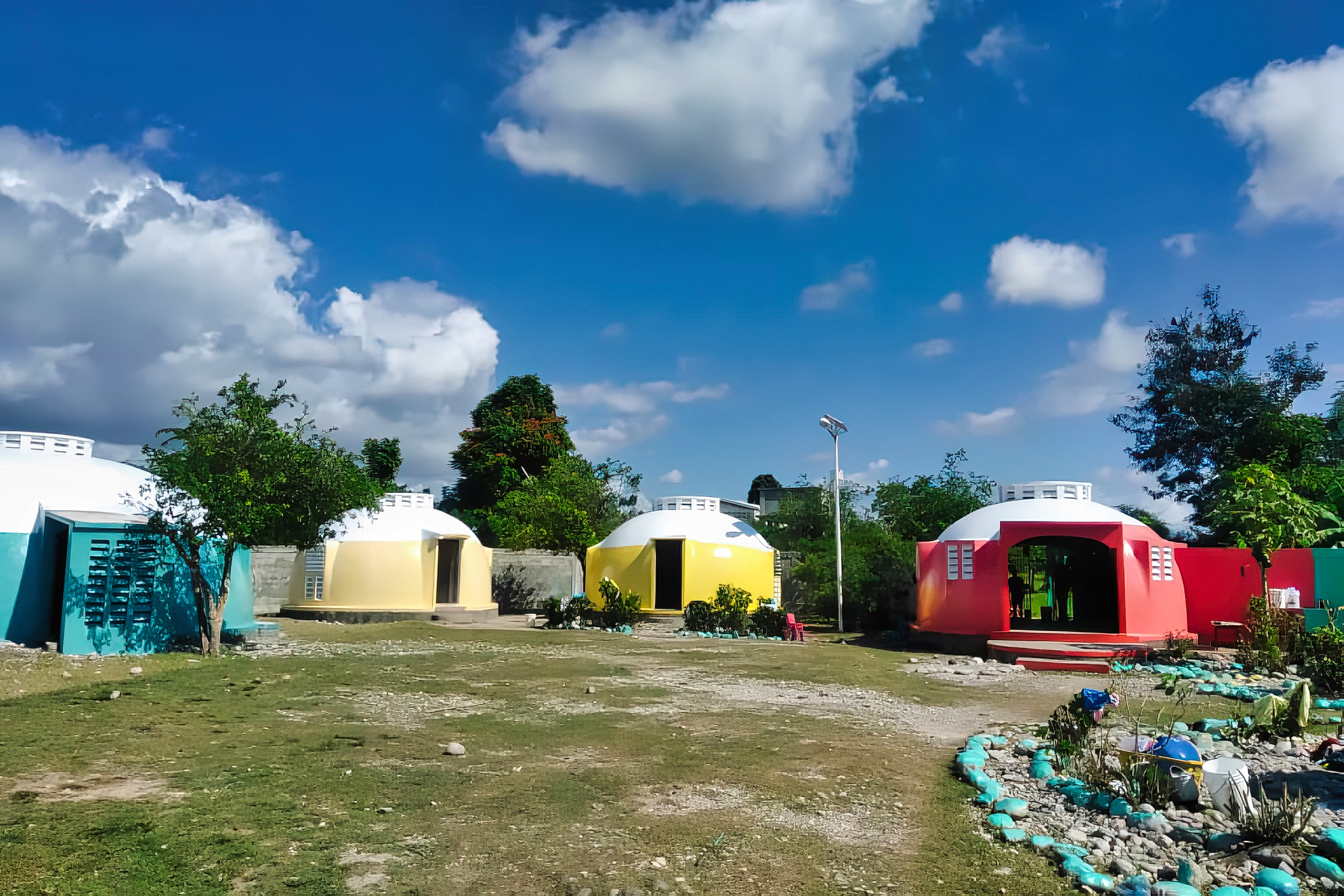 The first cluster of domes at Les Cayes recently got a cheerful facelift. The bright colors are more in sync with the rest of the domes located at the ESPWA campus.