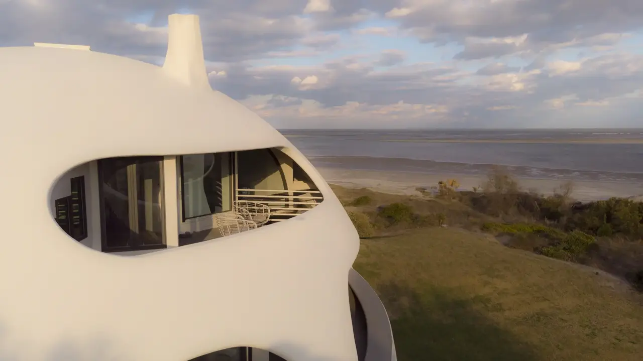 The Monolithic Dome home known as Eye of the Storm is for sale, here seen from the beachside.