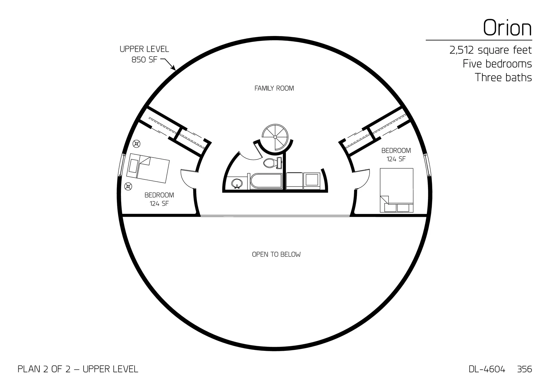 Orion: Main Floor of a 46' Diameter, 2,512 SF, Five-Bedroom, Three-Bath Floor Plan