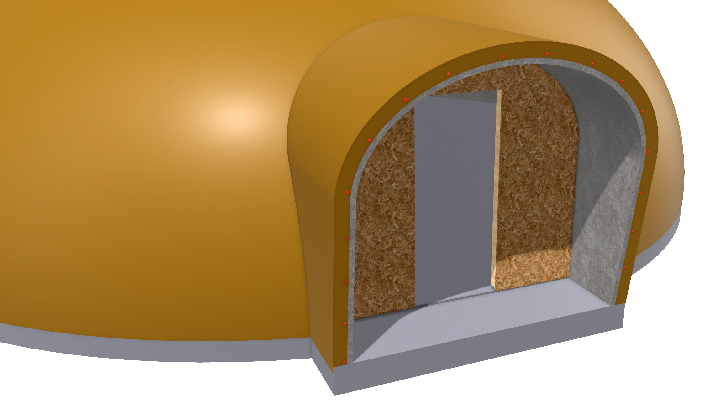 From the outside, at this point, the framing has been covered, and only the plywood is visible.