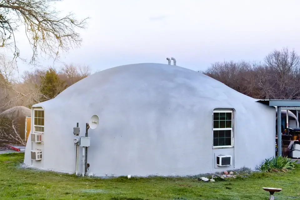 A 32 foot diameter Monolithic Dome Home with a new synthetic stucco roof. This roof will go 10 or 15 years before it will need to be top coated with a simple elastomeric roof coating.