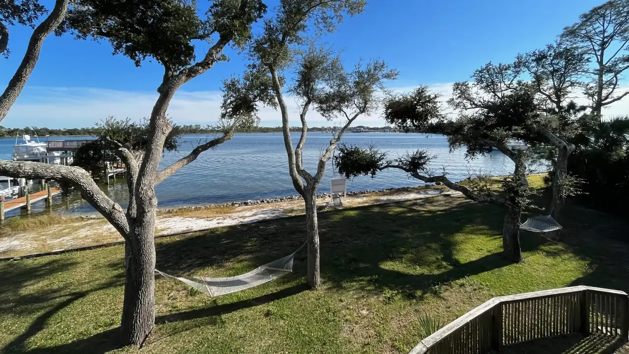 A view of Bayou Grande on the Gulf of Mexico beyond.