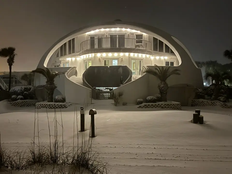 Pensacola Beach Dome Home on a Snowy Night
