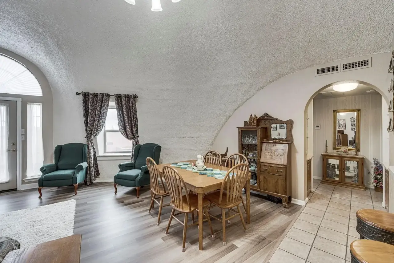 Looking across the great room from the kitchen looking to the smaller dome connected through the arched doorway.