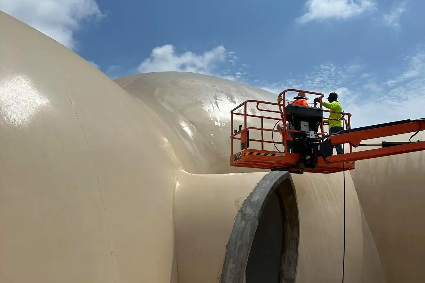 The first step to any coating project is washing the dome. A simple yet important step. Coatings are only as good as their substrate, and we need a good, clean substrate so that our coating will adhere properly to the Airform membrane.