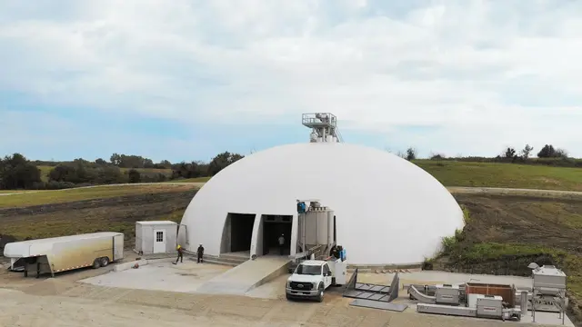 Work continues to finish the plant with one of two mixers installed at the delivery entrance. When complete, custom fertilizer mixes — depending on weather, crop, season, and other factors — are delivered to farmers to apply to their fields.