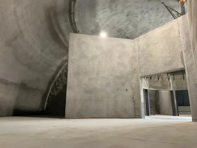 The largest of the seven storage bins can hold 22,500 cubic feet of material. The smallest storage holds 3,900 cubic feet. The facility contains a total of 94,000 cubic feet across all seven storage bins.